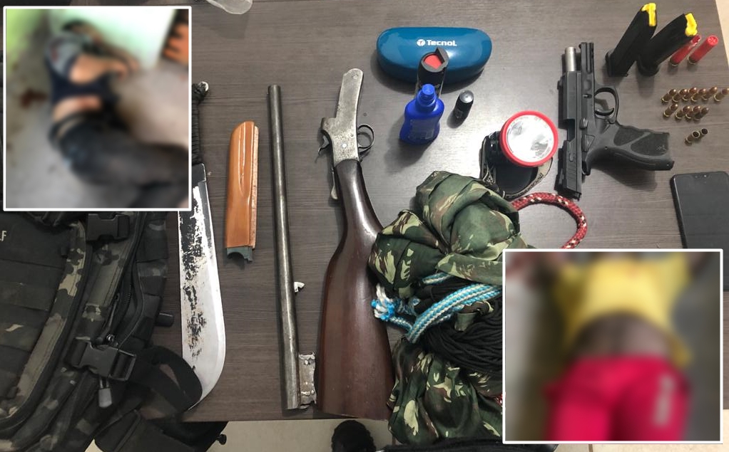 Por meio de áudio no WhatsApp, a Policia Militar foi informada sobre a ocorrência de um tiroteio. Ao lado deles, havia uma Pistola Taurus TH9 cal 9mm.