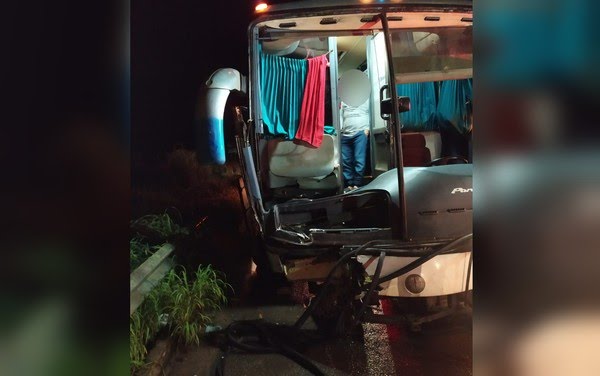 Os bombeiros informaram que o veículo teria invadido a pista contrária, onde trafegava o ônibus, e atingiu o coletivo frontalmente e na lateral. O cobrador, de 23 anos, que estava de pé no momento da batida, foi arremessado do veículo.